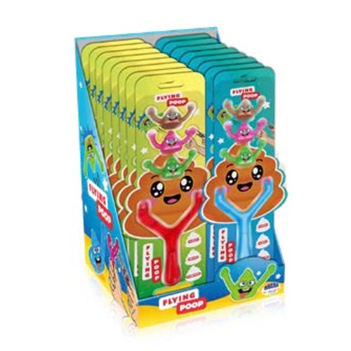 FLYING POOP : DIVERTENTISSIMO GIOCO FIONDA LANCIA CACCA.IN OGNI SINGOLO GIOCO TROVERAI GUSTOSE CARAMELLINE AL GUSTO DI FRUTTA.CONFEZIONE DA 18 PEZZI.