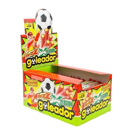 GOLEADOR STRAWBERRY & ORANGE FRIZZ XPLOSION SONO UNA VERA E PROPRIA ESPLOSIONE DI GUSTO : CARAMELLA RIPIENA AROMA FRAGOLA E ARANCIA RICOPERTA DI ZUCCHERO.
