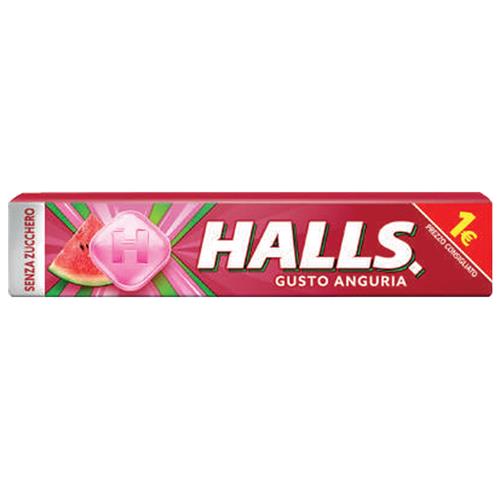 HALLS E'LA VARIETA' DELLA GAMMA COOL: UN'ESPLOSIONE DI GUSTO E FRESCHEZZA.HALLS ANGURIA E' LA CARAMELLA DAL CLASSICO EFFETTO BALSAMICO IN UN NUOVO INTRIGANTE GUSTO ANGURIA.CONFEZIONE DA 20 STICK.