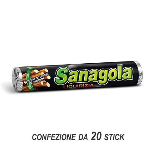 NATE NEI MITICI ANNI '50, LE SANAGOLA SONO LE MORBIDE CARAMELLE GOMMOSE DAL GUSTO INTENSO, CHE DURA A LUNGO.CONFEZIONE DA 20 STICK AL GUSTO DI LIQUIRIZIA.