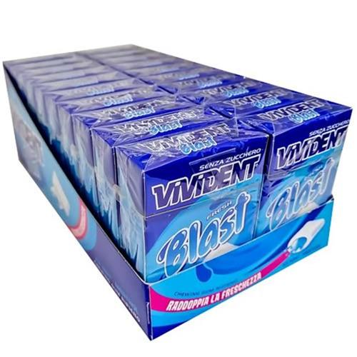 VIVIDENT BLAST E' UNA GAMMA COMPLETA DI CHEWING GUM SENZA ZUCCHERO. VIVIDENT BLAST E' IL CHEWING GUM RIPIENO CHE RACCHIUDE IN UN CONFETTO CROCCANTE UN CUORE LIQUIDO, PER UN ONDATA DI GUSTO E FRESCHEZZA. AL GUSTO DI MENTA ARTICA. CONFEZIONE DA 20 ASTUCCI.