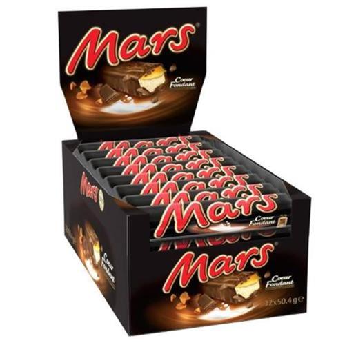 MARS: LA BARRETTA DI CIOCCOLATO DAL SUCCESSO PLANETARIO!MARS E' LO SNACK AL CIOCCOLATO AL LATTE RIPIENO CON CARAMELLO MOU E MALTO.CONFEZIONE DA 32 PEZZI.