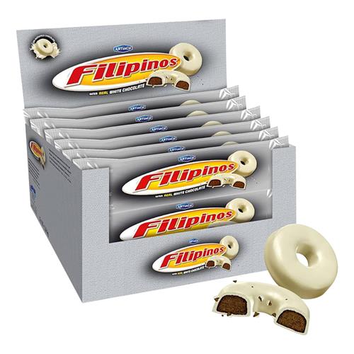 FILIPINOS CIOCCOLATO BIANCO : DELIZIOSI BISCOTTI CROCCANTI A FORMA DI CIAMBELLINA , RICOPERTI DI GOLOSO CIOCCOLATO BIANCO.