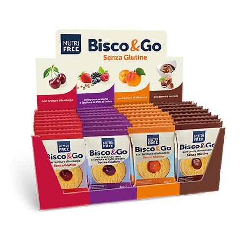 NUTIFREE EXPO' BISCO&GO: SONO DELIZIOSI BISCOTTI FATTI CON CREMA DI RISO E FARINA DI MAIS CON UN CUORE DI FARCITURA ALLA CILIEGIA, AI FRUTTI DI BOSCO, ALL'ALBICOCCA E ALLA CREMA DI NOCCIOLA. SENZA GLUTINE DISPONIBILE NEL PRATICO FORMATO MONOPORZIONE, IL BISCO&GO E' PERFETTO PER UNA PAUSA GUSTOSA DOVE E QUANDO VUOI.