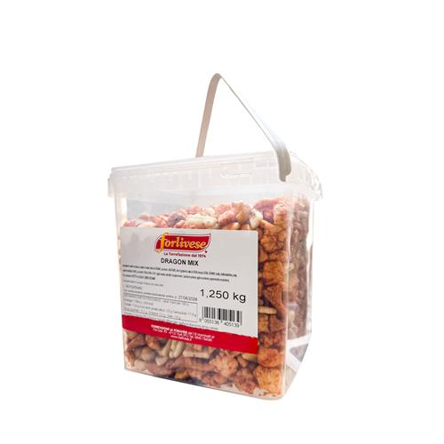DRAGON MIX : IL BARATTOLO CHE CONTIENE VARI SNACK PER APERITIVO TUTTI PICCANTI.