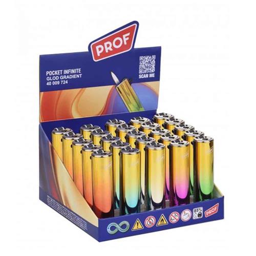 ACCENDINO PROF GRADIENT METAL CASE JET LIGHTER : ACCENDINO ANTIVENTO CON CASSA IN METALLO SFUMATO COLORATO. CONFEZIONE DA 25 PEZZI.