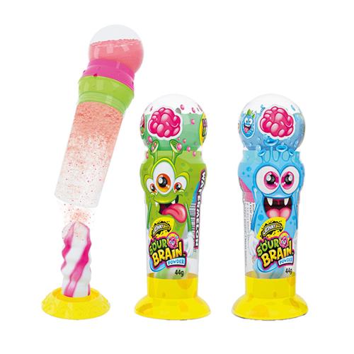 SOUR BRAIN POWDER : LECCA LECCA CON DISPENSER PER CARAMELLE IN POLVERE ACIDE.GUSTO : COLA , FRAGOLA , ANGURIA.CONFEZIONE DA 12 PEZZI.