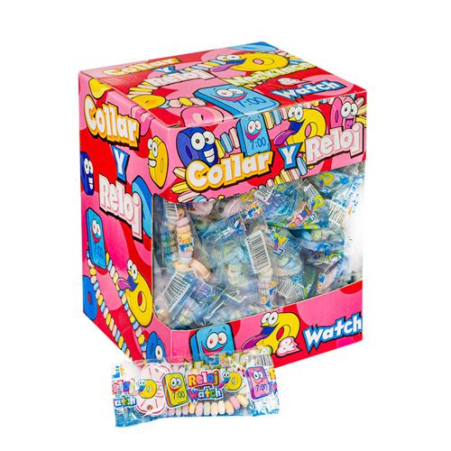 CANDY WATCH E' UNA COLLANA CON CIONDOLO AD OROLOGIO FATTA DI CARAMELLE COMPRESSE .