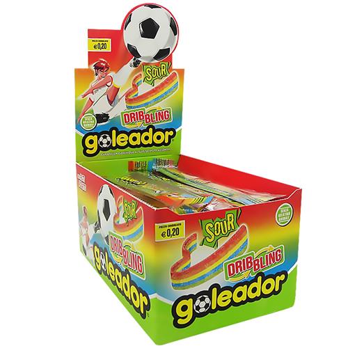 GOLEADOR E' LA CARAMELLA GOMMOSA E DA OLTRE 30 ANNI RIEMPIE LE TASCHE DEI PIU' PICCOLI ED E' UN TUFFO NEL PASSATO PER I PIU' GRANDI!GOLEADOR DRIBBLING RAINBOW SOUR SONO LASTRINE DI CARAMELLE GOMMOSE ZUCCHERATE AL GUSTO DI FRUTTI ASSORTITI.CONFEZIONE DA 144 PEZZI.
