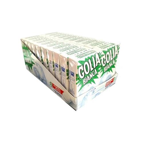 GOLIA: MARCHIO STORICO ITALIANO NATO NEGLI ANNI '30.GOLIA BIANCA E' UN CONFETTO CROCCANTE FUORI AL GUSTO DI MENTA E TENERO DENTRO AL GUSTO DI LIQUIRIZIA. CONFEZIONE DA 20 ASTUCCI.
