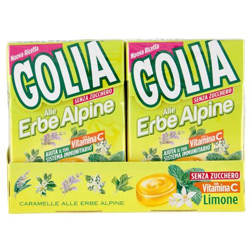 GOLIA: MARCHIO STORICO ITALIANO NATO NEGLI ANNI '30.GOLIA HERBS: LA LINEA DI CARAMELLE SENZA ZUCCHERO ALLE ERBE DALLA NATURA BENEFICHE E BALSAMICHE PER LA GOLA. AL GUSTO DI LIMONE. CONFEZIONE DA 20 ASTUCCI.
