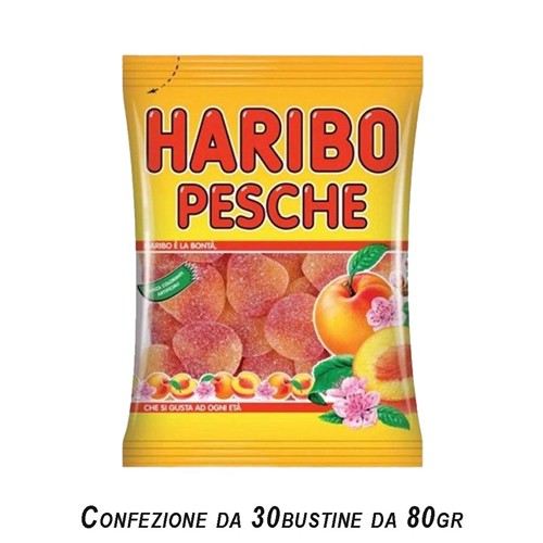 CARAMELLE GOMMOSE HARIBO: TRAVOLGENTI, COLORATE E IRRESISTIBILMENTE GUSTOSE!HARIBO PESCHE SONO CARAMELLE GOMMOSE ZUCCHERATE AL GUSTO DI PESCA.CARTONE DA 30 PEZZI.