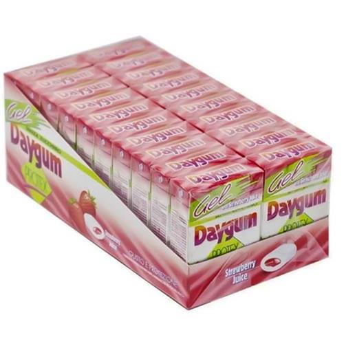 DAYGUM PROTEX GEL E' IL CHEWING GUM RICCO DI CALCIO E FLUORO CON SUCCO DI FRAGOLA.