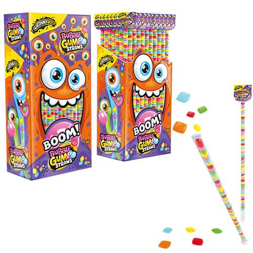 BUBBLE GUM STRAWS : GOMME DA MASTICARE COLORATE , AL GUSTO DI TUTTI I FRUTTI , IN CANNUCCIA.