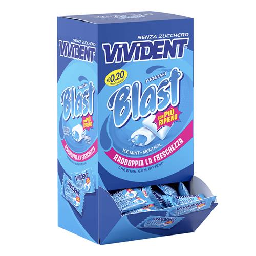 VIVIDENT BLAST E' UNA GAMMA COMPLETA DI CHEWING GUM SENZA ZUCCHERO. VIVIDENT BLAST E' IL CHEWING GUM RIPIENO CHE RACCHIUDE IN UN CONFETTO CROCCANTE UN CUORE LIQUIDO, PER UN ONDATA DI GUSTO E FRESCHEZZA. AL GUSTO DI MENTA ARTICA. CONFEZIONE DA 200 PEZZI.