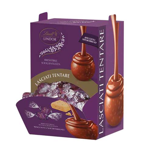 LINDOR BOULES BISCOTTO SHORTBREAD : RACCHIUSO DA UN GUSCIO DI CIOCCOLATO AL LATTE CON DEI FRAMMENTI GUSTOSI DI BISCOTTO SHORTBREAD, BISCOTTO TIPICO SCOZZESE.